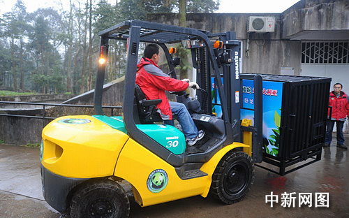 中新網(wǎng)成都11月27日電 (記者楊杰) 27日早上8時(shí)30分,在臥龍中國保護(hù)大熊貓研究中心白熊坪,工作人員一片忙碌,開始將赴澳大利亞的大熊貓“網(wǎng)網(wǎng)”、“福妮”裝籠,并送上卡車整裝待發(fā)。10時(shí)整,歡送“網(wǎng)網(wǎng)”、“福妮”儀式舉行,中澳雙方動(dòng)物專家和相關(guān)官員出席。隨后,在家鄉(xiāng)人民祝福和不舍的目光中,車隊(duì)緩緩駛離雅安,前往成都雙流國際機(jī)場。