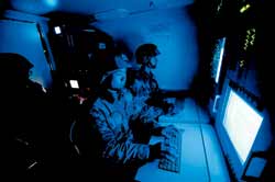在行動(dòng)的各個(gè)環(huán)節(jié),擔(dān)負(fù)干擾的“藍(lán)軍”電磁分隊(duì)加緊實(shí)施干擾!八{(lán)軍”電磁分隊(duì)不時(shí)釋放錯(cuò)誤誘導(dǎo)信息,干擾“紅軍”指揮通信,誘使裝甲車隊(duì)向錯(cuò)誤地域開(kāi)進(jìn),“紅軍”指揮員及時(shí)啟用隱蔽指揮網(wǎng)接受上級(jí)命令,各級(jí)指揮員迅速采取應(yīng)對(duì)措施,開(kāi)通新的通信網(wǎng)絡(luò)。隨著信息對(duì)抗的展開(kāi),“藍(lán)軍”啟動(dòng)多種干擾方式對(duì)“紅軍”指揮控制通信系統(tǒng)進(jìn)行干擾壓制,紅方指揮員啟用反干擾預(yù)案,綜合運(yùn)用多種手段對(duì)抗,并設(shè)置佯動(dòng)通信網(wǎng),對(duì)“藍(lán)軍”實(shí)施戰(zhàn)術(shù)欺騙,保障了指揮通信的順暢!八{(lán)軍”隨即啟用動(dòng)態(tài)干擾網(wǎng)絡(luò),搜尋“紅軍”指揮通信網(wǎng),采取從短波、超短波、到微波接力等多波段覆蓋式干擾壓制,此時(shí)的“紅軍”大部通信方式中斷,采取有線通信、衛(wèi)星通信與運(yùn)動(dòng)通信相結(jié)合的方式,保證了不間斷的指揮。