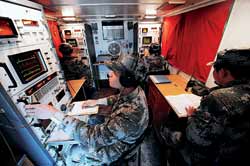 由濟(jì)南軍區(qū)組織的“鐵拳—2009·確山”實(shí)兵實(shí)彈檢驗(yàn)性演習(xí)11月中旬拉開(kāi)帷幕,演習(xí)全程設(shè)置了復(fù)雜電磁環(huán)境,這是我軍首次在復(fù)雜電磁環(huán)境下對(duì)整建制機(jī)械化步兵師綜合作戰(zhàn)能力進(jìn)行檢驗(yàn),探索我軍信息化條件下的訓(xùn)法、戰(zhàn)法。在遠(yuǎn)程機(jī)動(dòng)過(guò)程中,記者深深感受到如影隨形、變幻莫測(cè)的電磁干擾。