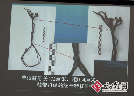 在通報(bào)會(huì)上,昆明市人民檢察院技術(shù)處副處長(zhǎng)梁泓說,經(jīng)辦案單位委托依法對(duì)尸體進(jìn)行系統(tǒng)解剖,并提取相關(guān)檢材進(jìn)行毒化等實(shí)驗(yàn)室檢查,鑒定其死亡原因?yàn)闄C(jī)械性窒息死亡,結(jié)合現(xiàn)場(chǎng)勘查、痕跡檢驗(yàn)可確定為自縊,縊死工具為鞋帶。