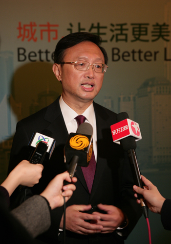 楊潔篪說,2010年世博會不僅是上海的世博會,中國的世博會,更是世界的世博會,是國際經(jīng)濟(jì)、社會與人文領(lǐng)域的一大盛會,是世界各國人民相互交流、謀求共同發(fā)展繁榮的歷史機(jī)遇,將成為世界經(jīng)濟(jì)和科技成果的展示平臺、文化藝術(shù)的交流平臺、國際交往的友誼平臺。中國政府高度重視上海世博會籌備工作,將舉全國之力,集世界智慧,為世界奉獻(xiàn)一屆精彩、成功、難忘的盛會,并與世界各國一道共享世博會帶來的發(fā)展機(jī)遇和成果。