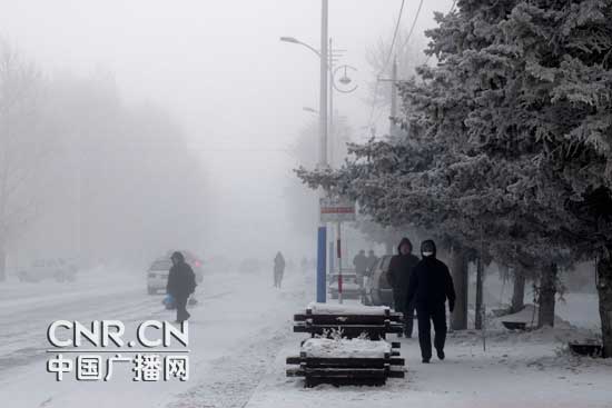 由于極端低溫,地面水蒸氣遇冷立即凝結(jié),造成大霧天氣。惡劣天氣嚴(yán)重影響了人們出行。呼倫貝爾海拉爾區(qū)交巡警大隊(duì)副隊(duì)長(zhǎng)李剛告訴記者:“現(xiàn)在全市每天有一半的警力上路,提醒所有車輛白天也必須打開車燈,強(qiáng)制車輛降速慢行!(記者劉源源 呼倫貝爾臺(tái)記者左珍 馬麗君)
