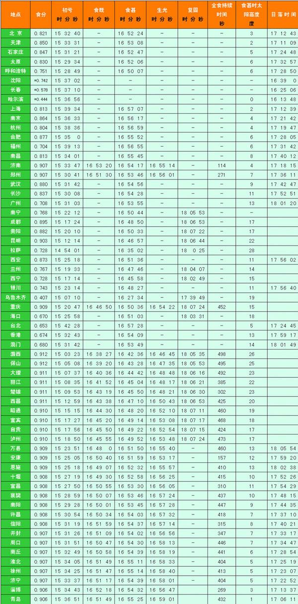 以下是不同地點的時間見食帶表: