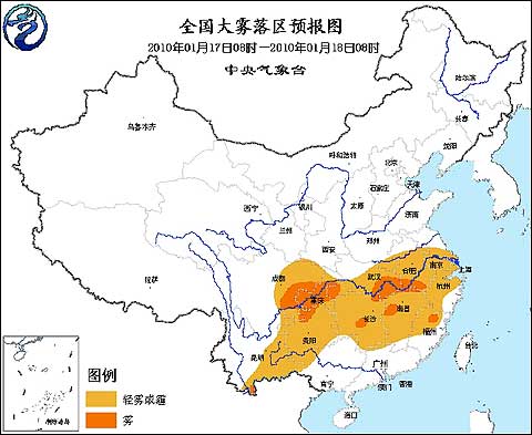 中央氣象臺2010年1月17日06時發(fā)布大霧藍色預警: