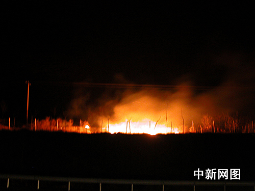 記者于下午5時(shí)30分接報(bào)后,立即向滿(mǎn)城縣官員進(jìn)行了火情通報(bào),并驅(qū)車(chē)沿京昆高速滿(mǎn)城收費(fèi)站由北向南了解火情。只見(jiàn)京昆高速路西側(cè)連綿二、三十里的山頂已成了一條火帶。山上枯草、灌木等植被噼里啪啦的燃燒聲不絕于耳,火苗隨風(fēng)力忽大忽小。行進(jìn)至順平境內(nèi),記者未見(jiàn)到山上有明火。