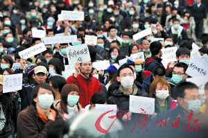 昨日下午1時許,空中不時飄灑著細(xì)雨,高明市民劉先生冒雨走在人群中。“我看到有組織者說24日將舉行這個活動,于是我便報了名!庇芯W(wǎng)友在論壇上透露,通過論壇信件等各種方式報名的市民已經(jīng)達(dá)到數(shù)百人的規(guī)模。
