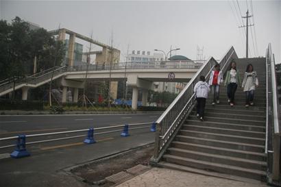 “天橋太陡,輪椅推不動(dòng),只有繞一個(gè)路口再過馬路!痹诙h(huán)路郭家橋西街路口,市民張女士對眼前新建的天橋有些無奈。她說,推著坐輪椅的父親過街時(shí),每次遇到天橋都要繞道。