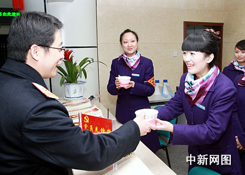 有旅客小心地把中國(guó)結(jié)放進(jìn)行李箱里,也有旅客把布老虎系在背包上,氣氛一下熱烈起來(lái),大家吃著熱氣騰騰的湯圓,你一言他一語(yǔ)的和工作人員拉起家常來(lái):“你們也很辛苦,大過(guò)年的,還要給我們這些旅客服務(wù),不能和家人團(tuán)聚!薄澳睦镌(huà),說(shuō)真的,看到你們平安高興返家,我們比自己和家人團(tuán)聚還高興!