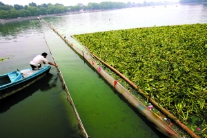 “主要是水不清了!笔泄珗@管理中心副主任高大偉說,部分水域還頻繁暴發(fā)水華現(xiàn)象,水面像涂了綠漆,非常影響景觀效果。