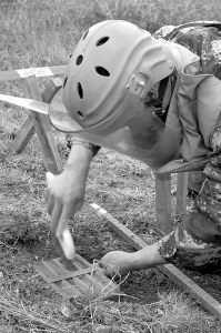 “我們每次要連續(xù)作業(yè)兩個小時,每天要工作6個小時以上。”掃雷作業(yè)手姜海龍說,“雷場雜草叢生,悶熱無比,除了地雷的威脅外,我們還要時刻提防毒蛇、蝎子、毒蜂和跳蚤!