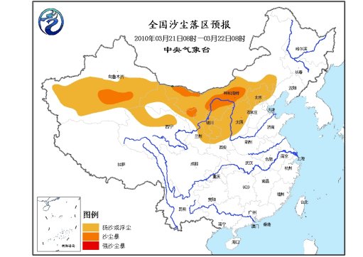 受進(jìn)入新疆的冷空氣及其東移影響,21日08時至22日08時,南疆盆地、甘肅中西部、青海柴達(dá)木盆地、內(nèi)蒙古中西部、寧夏、陜西北部、華北西部和北部等地有沙塵天氣,其中,南疆盆地中東部、甘肅西部、內(nèi)蒙古中西部的部分地區(qū)有沙塵暴,上述地區(qū)并有5~6級偏北風(fēng),陣風(fēng)風(fēng)力可達(dá)7級。