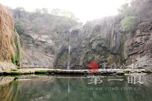 瀑布旁邊的巖壁長滿了文竹和馬耳朵草,現在已經全部枯黃。景區(qū)里邊的竹林、枇杷樹等,大部分也枯黃。植被下邊的泥土變成了沙,用手抓起來輕輕一捏就變成細小粉末,從指縫中往下滑。