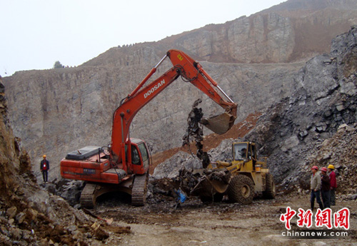 記者在順江采石場救援看到,救援現(xiàn)場濃霧彌漫,最低時(shí),能見度不足10米,但凌晨挖掘出的5輛汽車殘骸不得不讓10多臺(tái)挖掘機(jī)加緊工作。16:30分許,在1號(hào)通道左側(cè)前下方,挖掘機(jī)師傅徐斌正在挖土,突然,一個(gè)人從泥石堆里滾落出來。“快來,有人!甭牭胶奥,消防、武警等救援人員迅速趕到現(xiàn)場,現(xiàn)場所有作業(yè)的機(jī)械全部停了下來,山谷中一片寂靜,隨后又一名遇難者被發(fā)現(xiàn),兩名遇難者均在搜救犬定位范圍內(nèi)。