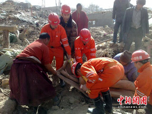 15日凌晨0:40分,什邡救援隊接到玉樹州抗震救災指揮部命令,前往玉樹州玉樹縣結(jié)古鎮(zhèn)結(jié)古寺參與救援。什邡救援隊隊員們不辭辛勞,在廢墟中發(fā)現(xiàn)一名中年婦女,尚有氣息,隊員們立即展開救援,經(jīng)過約40分鐘的緊張施救,順利地將其救出,經(jīng)簡單的救治后,立即送往醫(yī)療隊救治。
