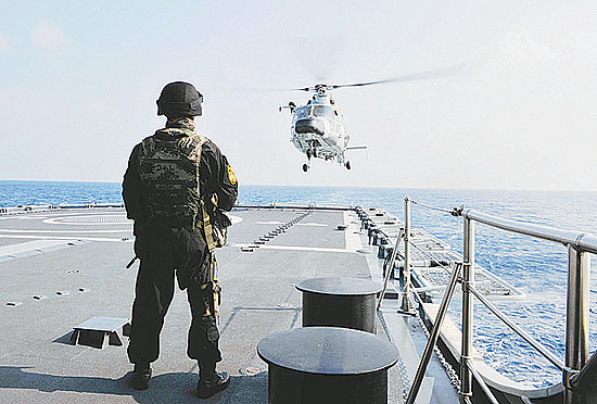 談到具體應(yīng)對措施,張文旦告訴筆者,為防止海盜襲擊,編隊(duì)靈活調(diào)整護(hù)航方式和隊(duì)形,加強(qiáng)觀察瞭望和值更值勤,做到盡早發(fā)現(xiàn)、盡早處置;實(shí)施特戰(zhàn)隊(duì)員隨船護(hù)衛(wèi),加強(qiáng)了對被護(hù)船舶的安全指導(dǎo);在海盜活動頻繁海域適時提升反海盜部署等級,綜合運(yùn)用多種手段和護(hù)航方式,震懾海盜。