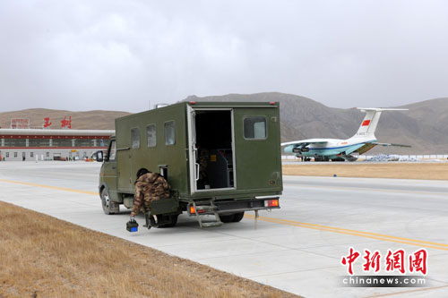 抗震救災(zāi)以來,有這樣一組數(shù)字浸透了軍人們的汗水:截至17日,空軍運(yùn)輸機(jī)共飛行60多架次,運(yùn)送救援人員1163名、傷員和陪護(hù)人員1352名、車輛8臺、物資608.7噸,并在原本不具備夜航條件的玉樹機(jī)場夜間飛行13架次。