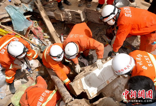 中新網(wǎng)成都4月17日電(肖洪環(huán))4月16日,玉樹7.1級地震救援進入第三天,也是“黃金72小時”的關鍵時機,四川消防鐵軍官兵按照溫家寶總理的指示,堅持“救人第一”的原則,利用生命探測儀、搜救犬和“喊、聽、問、看”等方式在廢墟下努力搜尋幸存者,不放過任何一個角落,不放棄任何一絲希望,全力以赴救援,展開了生命大營救,尤其是在縣城扎西巷一個居民樓救援現(xiàn)場發(fā)生的那一幕幕感人致深的場景,讓人們繼“5.12”以來再一次次地感受到人間最偉大的“母愛”,以及救援人員對生命、對逝者、對民族的尊重,在難救援現(xiàn)場處處彰顯出“災難無情、人間有情”的“大愛”。