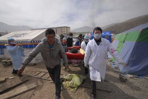 第一次遇到,在一個醫(yī)療帳篷前,他正和來自什邡的醫(yī)生一起抬著擔架向前飛奔,把重傷員轉移到救護車上;第二次遇到,在玉樹團州委設立的志愿者報名處的小桌子前,他正用沙啞的嗓音呼喊著幾名志愿者去山區(qū)抬傷員。