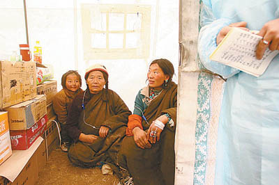 帳篷里還住著為了救人而精疲力盡的士兵、工人和志愿者,他們從全國各個省份來到這里,忍受著海拔4000多米高原上的缺氧和寒冷,把老人、孩子和傷殘者送上汽車、抬上擔(dān)架,有時,一不小心就會留下傷痕。他們許多人每天至少要工作15個小時,現(xiàn)在剛剛一身疲憊地回到營地,盤算著明天的任務(wù)。
