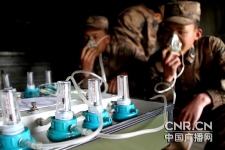 正在吸氧的某部戰(zhàn)士李從義告訴記者:“我是第一次上高原,反應(yīng)厲害,有了充足的氧氣,我們可以完成好這次抗震救災(zāi)任務(wù)!(記者朱江 彭洪霞 郝成濤)