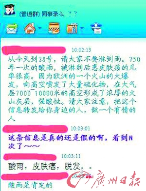 對于網(wǎng)絡(luò)和手機上瘋傳的“火山灰?guī)?50年一次的酸雨”,廣西、湖南等地氣象部門都已緊急辟謠。廣東省氣象局也提出昨天廣東降雨P(guān)H值正常,未受火山灰影響。