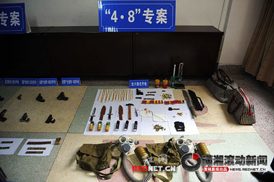 劉陽:拿了一把手槍,錘子、炸藥和催淚瓦斯。我是第一次見到真槍,我跟他說,你只要嚇唬嚇唬就可以了,我們只是為財(cái)不要開槍傷人。他說本來是打算進(jìn)去就直接打死一個人。