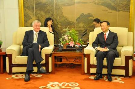中新網(wǎng)4月27日電 據(jù)外交部網(wǎng)站消息,外交部長楊潔篪今日在外交部會見德國巴伐利亞州州長、基社盟主席澤霍夫。楊外長積極評價中德關(guān)系以及中國與巴伐利亞州的友好合作,希望雙方相互尊重,進一步增進了解,努力擴大互利合作。澤霍夫說,巴伐利亞州與中國的友誼源遠流長,前州長施特勞斯1975年訪華時毛澤東主席曾予接見。巴伐利亞州將繼承傳統(tǒng),繼續(xù)發(fā)展同中國的各領(lǐng)域合作。