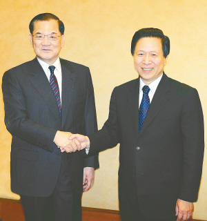 在會(huì)見(jiàn)時(shí)連戰(zhàn)感謝梁保華的熱情接待,他愉快地回憶了五年前首次率中國(guó)國(guó)民黨大陸訪(fǎng)問(wèn)團(tuán)來(lái)南京參觀(guān)訪(fǎng)問(wèn)的情形。他說(shuō),在這里見(jiàn)到各位老朋友、新朋友,心里非常感動(dòng),也有很溫馨的感覺(jué)。兩岸關(guān)系正朝著正確的方向一步步向前邁進(jìn)。在大家的共同努力下,兩岸的互信、友善、交流、合作都在不斷加深。去年11月梁保華書(shū)記率團(tuán)訪(fǎng)問(wèn)臺(tái)灣,是一次層級(jí)最高、與臺(tái)灣各界接觸最為廣泛、也是影響十分深遠(yuǎn)的訪(fǎng)問(wèn)。這次訪(fǎng)問(wèn)正值國(guó)際金融危機(jī)將了未了、混沌不清之時(shí),取得了許多方面豐碩成果,給雙方帶來(lái)了很多具體實(shí)在的利益,在兩岸交流中邁出了非常重要的一步。連戰(zhàn)說(shuō),不管從哪個(gè)角度來(lái)說(shuō),江蘇都是大陸發(fā)展的先進(jìn)省份,處于“領(lǐng)頭羊”的地位。在去年很困難的情況下,江蘇經(jīng)濟(jì)仍然保持高速發(fā)展,尤其在發(fā)展戰(zhàn)略性新興產(chǎn)業(yè)、生態(tài)環(huán)境保護(hù)等方面都走在前列。目前臺(tái)商在江蘇的投資約占大陸臺(tái)資的三分之一,臺(tái)灣與江蘇的貿(mào)易約占兩岸貿(mào)易總額的四分之一。這次我們非常榮幸地來(lái)江蘇參加海峽兩岸企業(yè)家紫金山峰會(huì),就是希望在既有的良好合作基礎(chǔ)上,推動(dòng)兩地經(jīng)貿(mào)合作百尺竿頭更進(jìn)一步,同時(shí)擴(kuò)大雙方在文化、教育、旅游觀(guān)光等方面的合作。相信經(jīng)過(guò)大家的共同努力,臺(tái)灣與江蘇的合作一定會(huì)開(kāi)花結(jié)果,精彩可期。