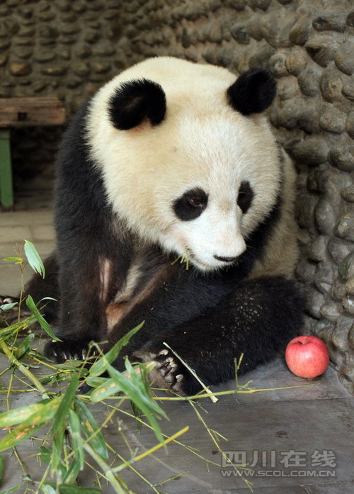 地震后的北川首次發(fā)現(xiàn)大熊貓,而且這只大熊貓身體狀況危急!昨日,這只大熊貓?jiān)诔啥夹茇埢馗綦x檢疫區(qū)接受專家的全方位檢查。基地獸醫(yī)院院長(zhǎng)楊智稱,通過(guò)兩天的緊急救治,大熊貓生命體征基本穩(wěn)定,但目前仍沒(méi)有脫離生命危險(xiǎn)。專家估計(jì),這只大熊貓是被媽媽攆出家門的。
