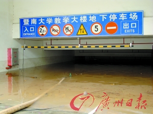 昨日中午,在暨南大學(xué)南門教學(xué)樓的地下停車場(chǎng),褐紅色的水淹沒(méi)了整個(gè)車庫(kù)!40多輛車在里頭,全完了!币幻吣洗髮W(xué)的老師告訴記者,這個(gè)地下車庫(kù)約有4米高,水涌出來(lái),接近外面的地面高度,里頭的車完全沒(méi)頂了,“就我們知道的,里頭有1輛才買了3個(gè)月的奔馳,還有大半都是才買了一兩年的新車,太可惜了!濒叽罂倓(wù)后勤管理處處長(zhǎng)張安國(guó)表示,這可算是暨大20年來(lái)最嚴(yán)重的一次水浸!八蛞蔀閸忢斉潘こ碳軜(gòu)不良,引起‘倒灌’。”(記者黃茜、陸建鑾 通訊員陳文舉、邢曉雯)