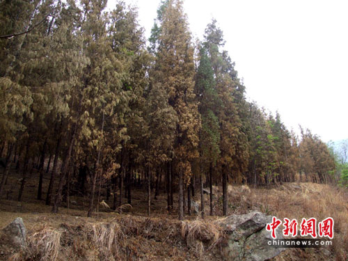 中新網(wǎng)昆明5月14日電( 鄭加升) 百年不遇的大旱,無情的肆虐著云南的大地。三季連旱的天氣,導(dǎo)致云南省東川區(qū)的樹木開始大面積枯萎甚至死亡。