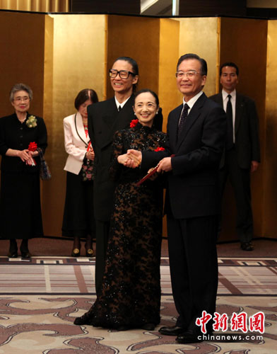 除了池田,獲獎的還有松山芭蕾舞團(tuán),前來領(lǐng)獎的是松山芭蕾舞團(tuán)第二代當(dāng)家,總代表清水哲太郎和森下洋子夫婦。森下洋子見到溫總理,行了一個芭蕾式的驅(qū)腿見面禮,她對溫總理說:“我演過白毛女喜兒!”。溫總理微笑著點(diǎn)頭,說:“我記得你,歡迎你再來中國演出,這也是中國人民的心愿!