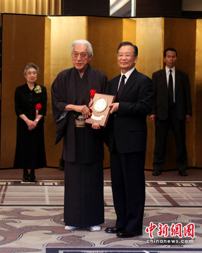 溫家寶總理說,今天這個頒獎儀式非同尋常,中日邦交正;哌^了一場艱難曲折的道路,在這過程中,起重要作用的是人民和朝野的力量。你們才是中日關(guān)系發(fā)展的功臣,歷史將記住你們,中日兩國人民將記住你們,我代表中國政府和中國人民謹(jǐn)向你們表達(dá)崇高的敬意和深深的謝意。