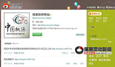 5月30日,記者通過(guò)國(guó)內(nèi)幾家知名微博平臺(tái)管理員查詢(xún)得知,湖南省內(nèi)地方政府開(kāi)通官方微博的只有桃源縣政府。