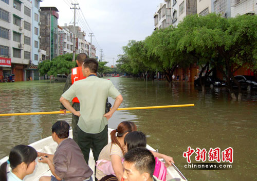 記者在來賓市實(shí)驗(yàn)中學(xué)看到,該校已成為一片湖泊。水深處約有1.6米,已經(jīng)淹過成年男子肩膀。水中七零八落飄散著住戶的生活用品,一樓居民已經(jīng)全部撤離。消防官兵自早上8時(shí)許開始對(duì)被困師生進(jìn)行救援,直至下午5時(shí),該校1100名被困師生及家屬全部撤至安全地帶。學(xué)校內(nèi)停電并且無法出行,影響了不少居民的正常生活。周邊幾家商鋪圍擋自家門口防止積水流進(jìn)店內(nèi),用各種器皿向外倒水。