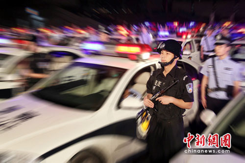 中新網(wǎng)杭州6月2日電(記者 趙曄嬌 通訊員 蕭公宣)2日晚,杭州市公安局蕭山分局在該區(qū)全面啟動(dòng)夏季治安“警燈閃亮•千警巡邏•世博護(hù)衛(wèi)”行動(dòng)。公安特警、刑偵民警、交通民警、治安民警、社區(qū)民警、警犬訓(xùn)導(dǎo)員(含警犬)嚴(yán)陣以待,深入推進(jìn)世博安保工作,強(qiáng)化夏季社會(huì)面治安巡防,營造強(qiáng)大斗爭聲勢。