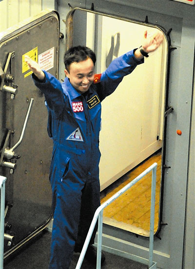 12時(shí)30分,“火星-500”項(xiàng)目總指揮莫魯科夫宣布最終進(jìn)艙的試驗(yàn)乘組名單。除了中國志愿者王躍外,其余5名志愿者分別為俄羅斯3名、法國和意大利各1名。