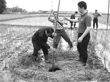 對于如何處理這兩個“天坑”,劉俊賢建議,首先,要在坑洞周圍不小于3米的范圍內(nèi)拉上警戒線,豎立警示標(biāo)志,防止小孩等掉入坑洞內(nèi)。其次,盡快回填塌陷坑洞,回填時應(yīng)分層夯實,避免砂土等透水性較強土體回填,回填后應(yīng)滿足水田種植要求;靥钪,應(yīng)阻擋灌溉水等地表水繼續(xù)流入塌陷坑洞中,以免坑洞進一步擴大。
