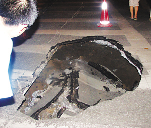 本報昨天A11版刊登了《南京鬧市驚現(xiàn)“天坑”》一文,報道了6月16日晚,長樂路箍桶巷東口斑馬線處突然塌陷,出現(xiàn)一處大坑。記者昨日從南京住建委處得知,他們事后專門組織人員前去勘察,認為路面塌陷與污水管道工程有一定關(guān)系,而且該地區(qū)地質(zhì)條件復(fù)雜,地下流沙嚴重。