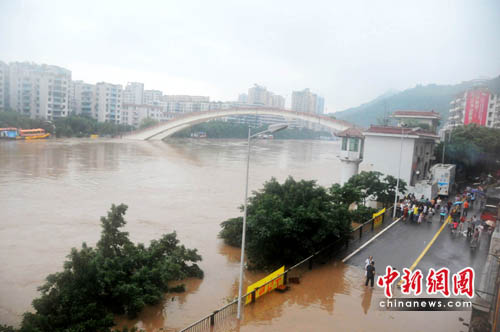 中新網(wǎng)重慶6月19日電 (銀雪 付毅)記者19日從重慶綦江縣水務(wù)局獲悉,19日14時(shí)許,當(dāng)?shù)佤牒铀簧蠞q至220.5米,17時(shí)左右綦河水位達(dá)到223米,超過警戒水位2.5米,超過保證水位(222.5米)0.5米。
