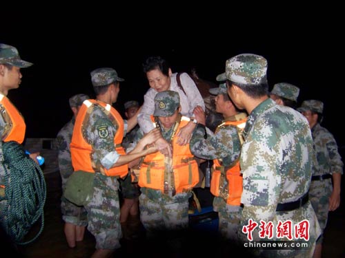 中新網(wǎng)建陽(yáng)6月20日電 (王柳珍)20日凌晨2時(shí),福建建陽(yáng)市城區(qū)洪峰水位135.23米,超警戒水位5.23米,由于持續(xù)暴雨,建陽(yáng)受災(zāi)嚴(yán)重,南京軍區(qū)海防某部的官兵,從福清火速趕到建陽(yáng)增援。