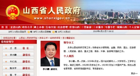 據(jù)山西省人民政府網(wǎng)站“省政府領導”欄目顯示,日前,李小鵬同志任山西省政府黨組副書記、常務副省長職務。