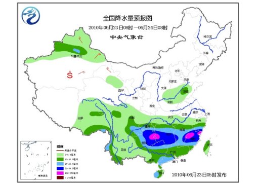 23日08時(shí)至24日08時(shí),西藏中東部、青海南部和祁連山區(qū)、川西高原等地有小到中雨(雪)或雨夾雪,新疆北部、華北南部、黃淮北部、江漢南部、江南大部、華南以及西南地區(qū)等地有小到中雨或陣雨,其中,四川盆地南部、重慶南部、貴州中東部、湖南大部、江西中南部、浙江南部、福建大部、廣西北部和東南部等地有大到暴雨,局地有大暴雨;新疆天山西部、西藏東南部、云南西北部、廣東西南部和西北部、海南西部等地的局部地區(qū)有大雨;上述部分地區(qū)并伴有短時(shí)雷雨大風(fēng)或冰雹等強(qiáng)對(duì)流天氣。新疆北部和西部有4~6級(jí)風(fēng),山口地區(qū)風(fēng)力可達(dá)8~9級(jí);內(nèi)蒙古中部有4~5級(jí)風(fēng)。南海西北部、北部灣有5~6級(jí)偏南風(fēng)。