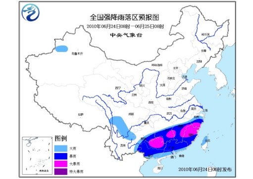 中新網(wǎng)6月24日電 中央氣象臺24日6時(shí)繼續(xù)發(fā)布暴雨黃色預(yù)警:預(yù)計(jì),6月24日8時(shí)到6月25日8時(shí),貴州南部、湖南中南部、江西大部、浙江中南部、福建、廣東大部、廣西等地有大到暴雨;廣西東北部、湖南東南部、江西中部偏東和中部偏西、浙江南部、福建中北部等地的部分地區(qū)有大暴雨。