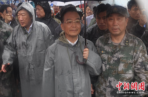 中新網(wǎng)撫州6月24日電(張見悅 何柳斌 劉占昆)24日,中共中央政治局常委、國(guó)務(wù)院總理溫家寶赴江西指導(dǎo)防汛抗災(zāi)工作。當(dāng)日上午,溫家寶總理冒雨深入重災(zāi)區(qū)撫州羅針鎮(zhèn),察看汛情、災(zāi)情,看望受災(zāi)群眾,慰問奮戰(zhàn)在抗洪搶險(xiǎn)一線的解放軍、武警、公安消防官兵。