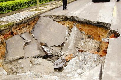 而在附近一工廠值班的陳先生說,事發(fā)時,整個值班室都在顫抖。據(jù)他介紹,橫一路在開發(fā)區(qū)投入使用已有10余年,“可能是最近幾天下雨,路面地下淘空了,才突然下陷!