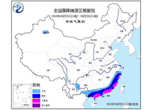 中新網(wǎng)6月25日電 中央氣象臺(tái)6月25日06時(shí)繼續(xù)發(fā)布暴雨黃色預(yù)警:預(yù)計(jì),6月25日08時(shí)到6月26日08時(shí),浙江中南部、福建大部、廣東、廣西中南部有大到暴雨,其中,廣西東部、廣東東部及云浮地區(qū)、福建東部等地的部分地區(qū)有大暴雨;上述部分地區(qū)并伴有短時(shí)雷雨大風(fēng)等強(qiáng)對(duì)流天氣。另外,云南東部的部分地區(qū)有大雨。
