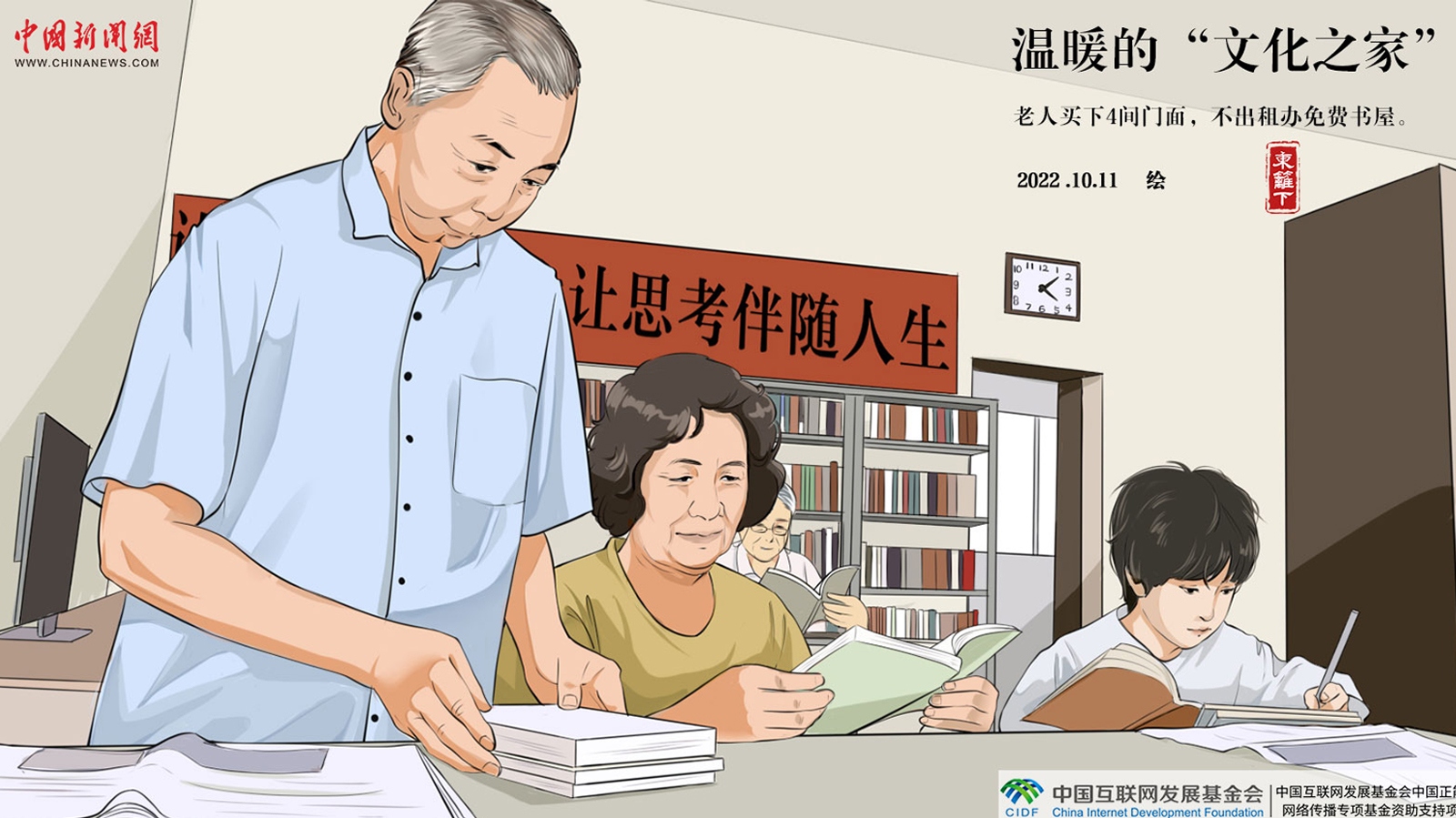 江蘇鹽城,77歲的付爺爺患有牙齦癌,6年前他自費(fèi)買下四間門面辦起了“文化之家”,開設(shè)免費(fèi)農(nóng)家書屋、體育活動(dòng)室供村民使用。