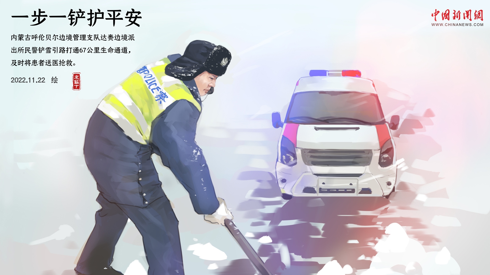 接警后,該所移民管理警察攜帶工具迅速趕往現(xiàn)場(chǎng),邊挖邊行,用時(shí)4個(gè)小時(shí),將救護(hù)車護(hù)送至67公里外的滿洲里市人民醫(yī)院。