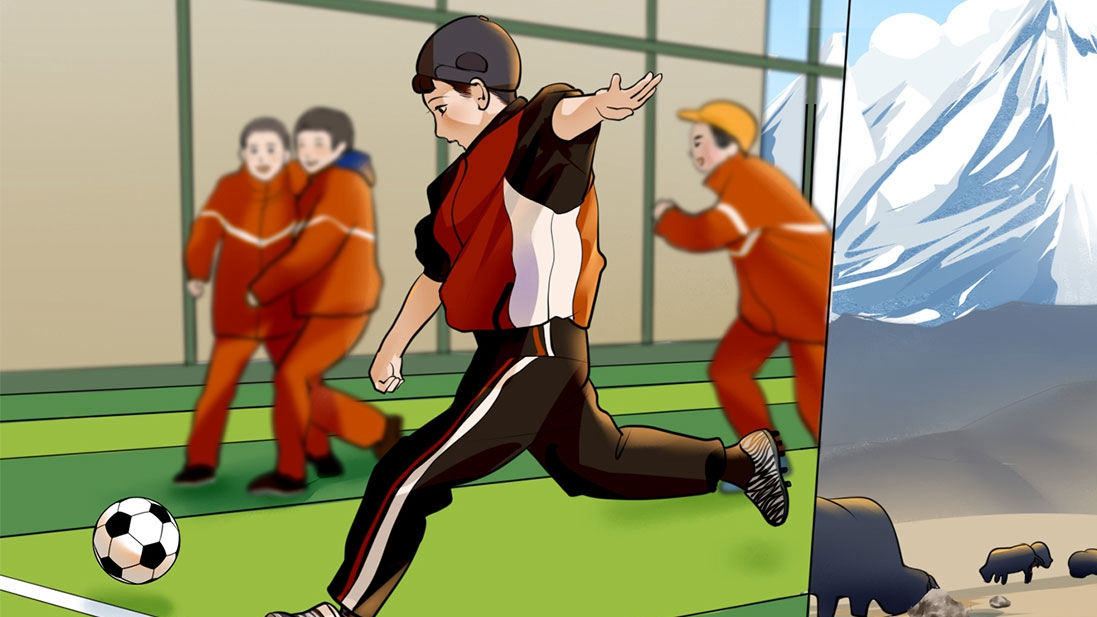 西藏定日縣扎西宗鄉(xiāng),坐落在珠峰腳下,這里幾乎人人都愛踢足球。男孩格旦曲桑沒有足球鞋,他的好朋友巴桑加布是個(gè)左撇子,于是兩小將共享球鞋湊成黃金左右腳,還一起拿到了學(xué)校足球比賽第二名。